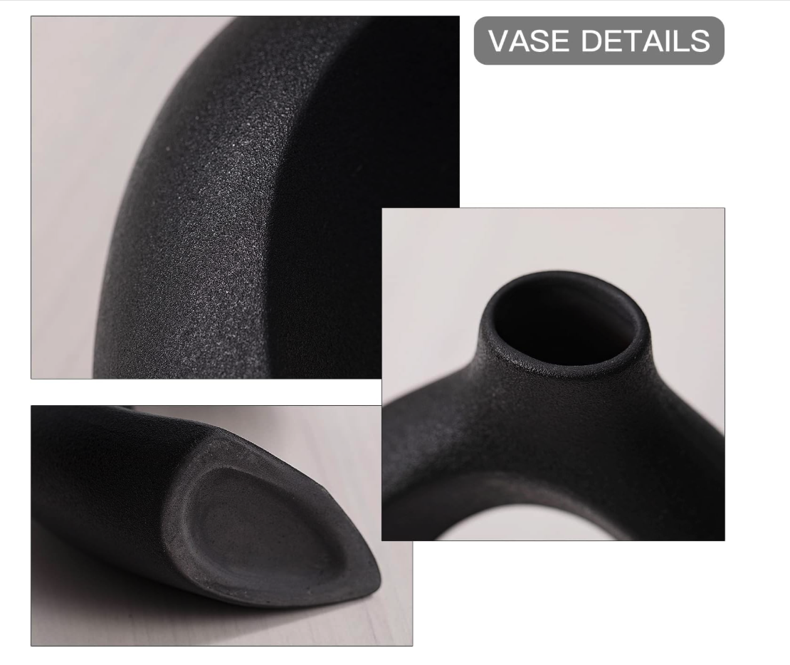 • ?【Texture】 - The black ceramic vase is fired at 1300 degrees, making it a unique work of art, the body of the vase has a vertical grained matte texture, the bottom is polished smooth, the footing is stable, it will not hurt the table top, the entire surface feels comfortable, it can be inserted into your favorite dried flowers, pampas grass, reeds, a variety of different flowers to decorate your home with flowers, greenery, succulents