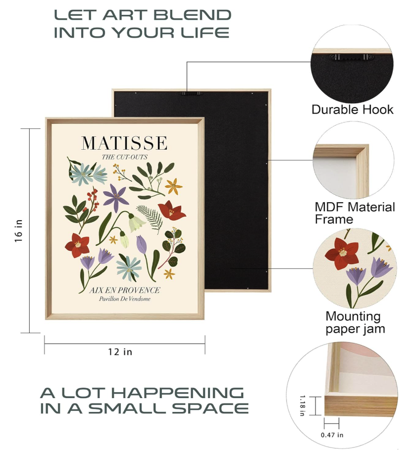 • MATISSE PRINTS WALL DECOR SET:Matisse Wall Art Set of 3,Abstract Matisse Wall Art Decor. Featuring the iconic works of Henri Matisse, a renowned French artist of the early 20th century, these prints showcase vibrant colors and simple patterns that embody a spirit of freedom and vitality. This minimalist art style adds a refreshing touch to your decor.